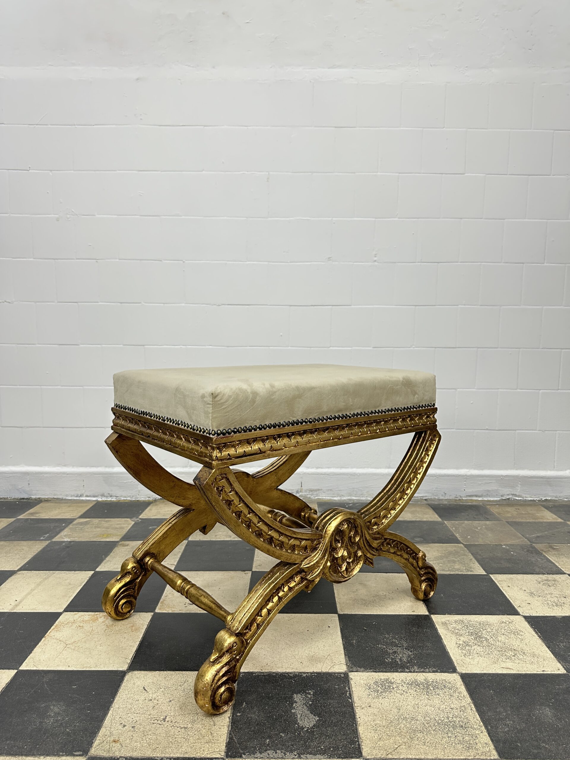 Desenvolvida no ateliê de Denis Antiguidades, a banqueta reflete a tradição e o cuidado artesanal característicos da marca.