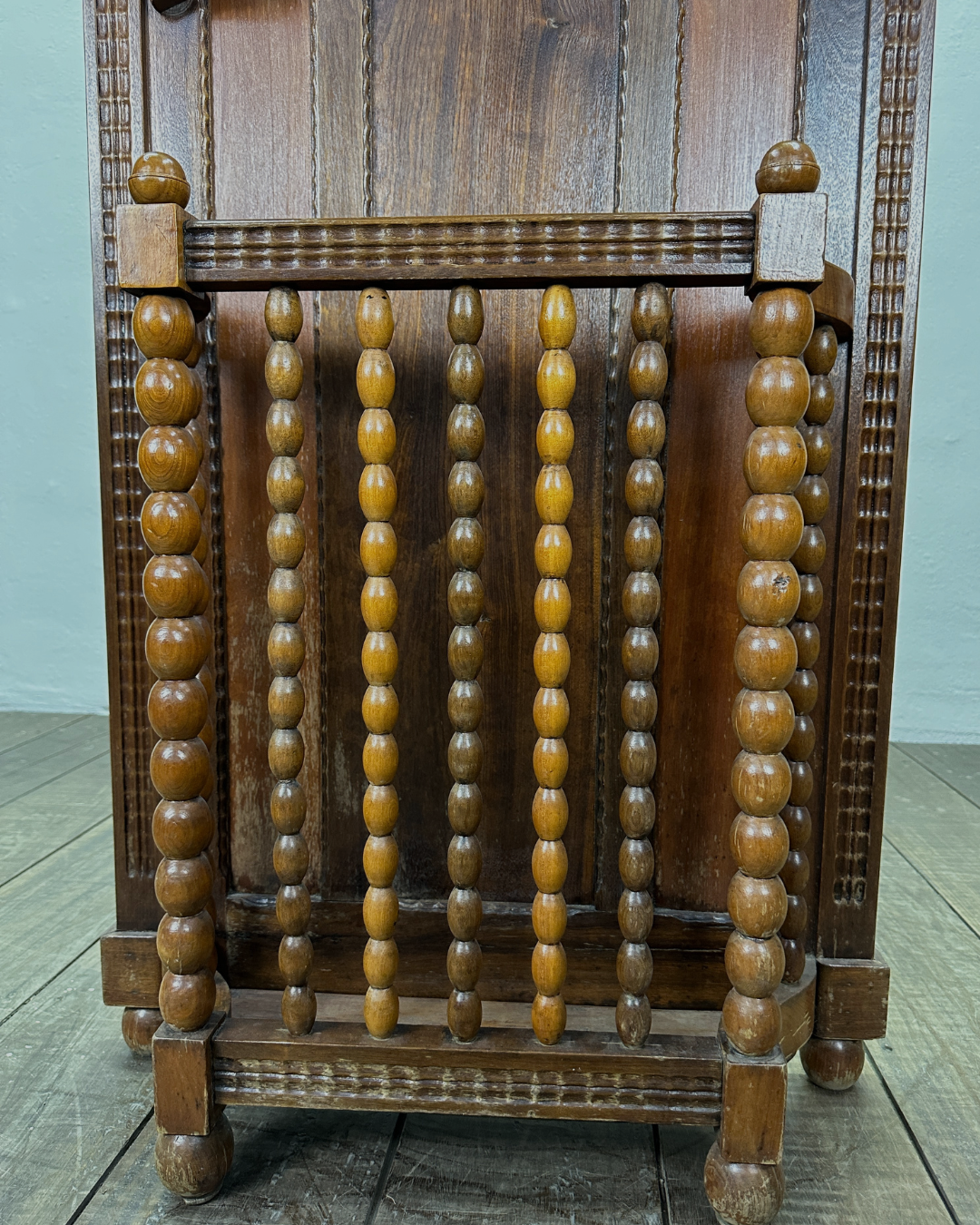 A Chapeleira Anos 30 em imbuia com espelho é uma peça elegante e funcional, típica do mobiliário do início do século XX. Com design clássico e estrutura vertical, essa chapeleira combina a beleza da madeira nobre com a praticidade de um espelho integrado, além de ganchos para chapéus e casacos. Ideal para compor halls de entrada ou corredores com um toque de charme vintage e sofisticação.