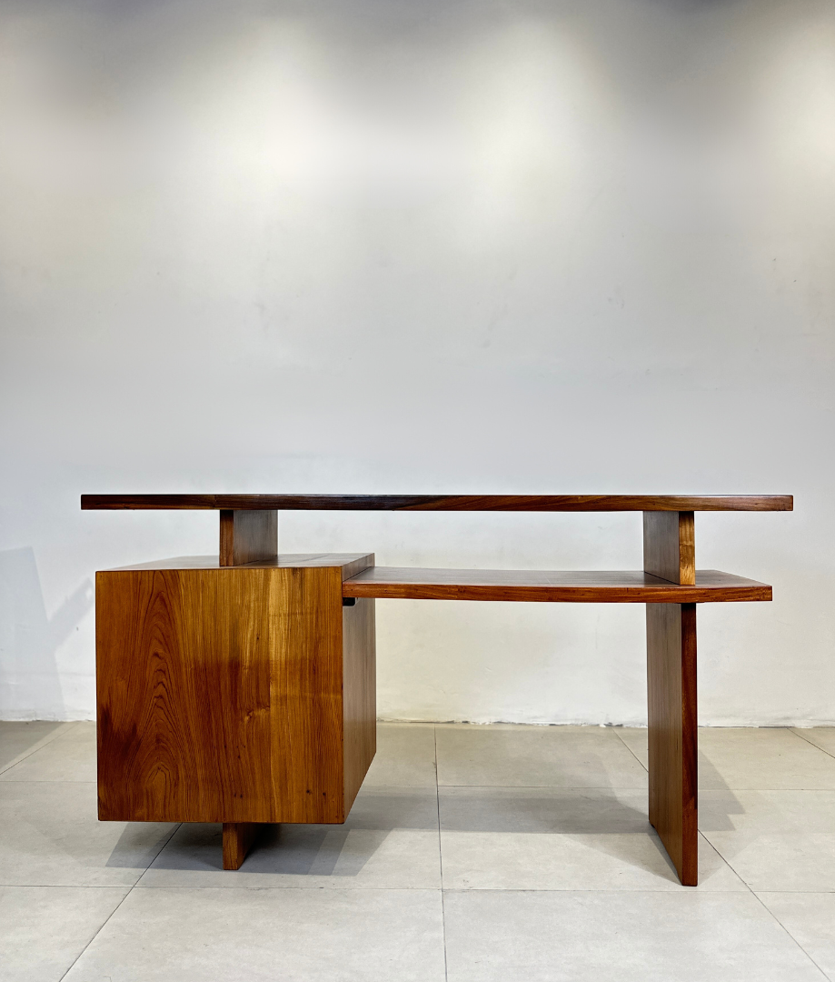 Descrição: A Escrivaninha Anos 50, criada por Giuseppe Scapinelli, é uma peça clássica e elegante que reflete o estilo sofisticado da década de 1950. Feita de Caviuna, um tipo de madeira conhecida por sua durabilidade e beleza, esta escrivaninha combina funcionalidade e design refinado, ideal para escritórios ou espaços de trabalho que buscam um toque vintage.
