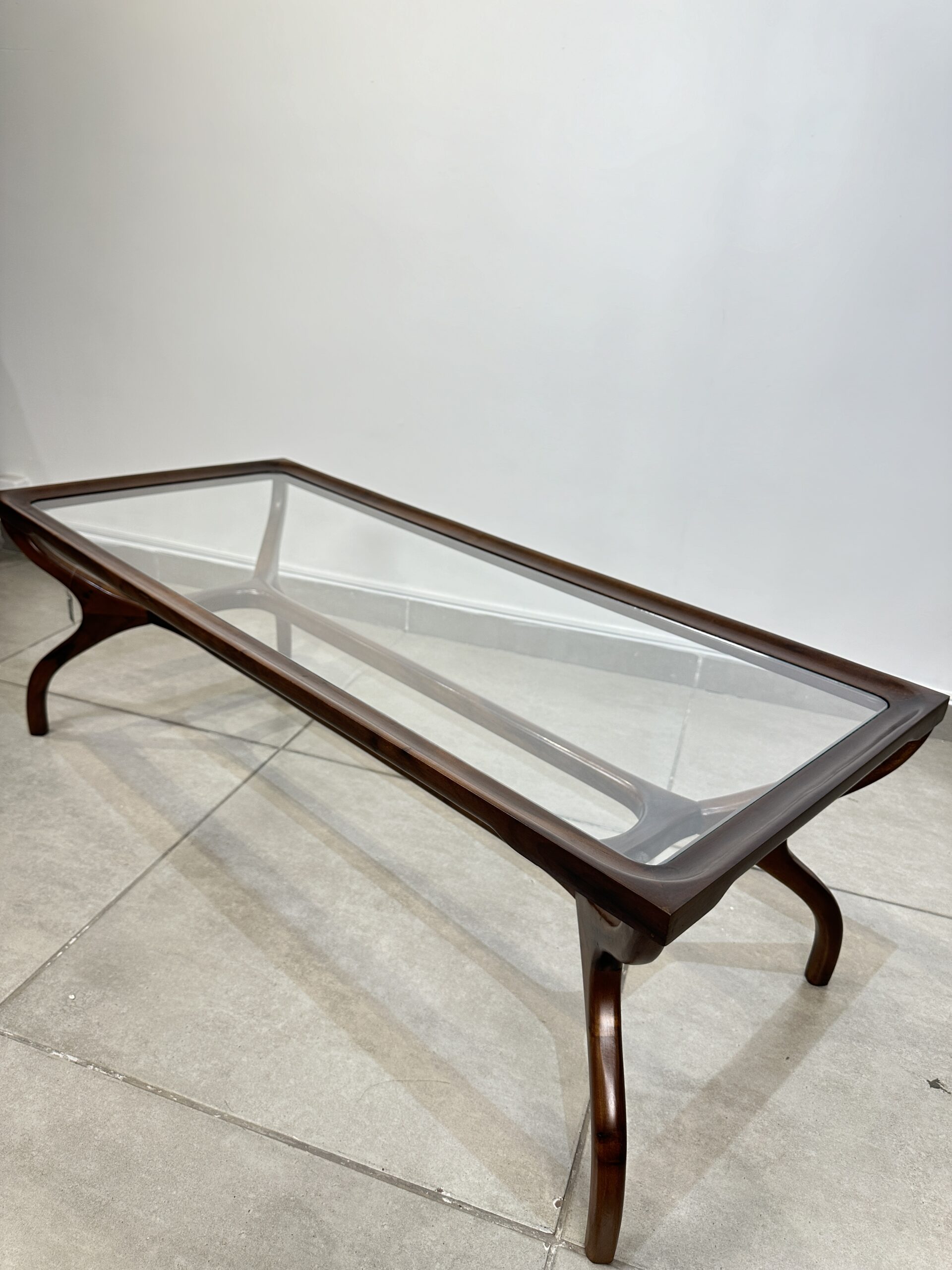 Descrição: A Mesa de Centro Scapinelli, assinada pelo renomado designer Giuseppe Scapinelli, é uma peça que combina elegância e funcionalidade. Feita de imbuia com tampo de vidro natural, esta mesa de centro se destaca pelo seu design sofisticado e pelas linhas suaves que são características das criações de Scapinelli. É ideal para quem busca uma peça de mobiliário de alto padrão que também seja funcional.