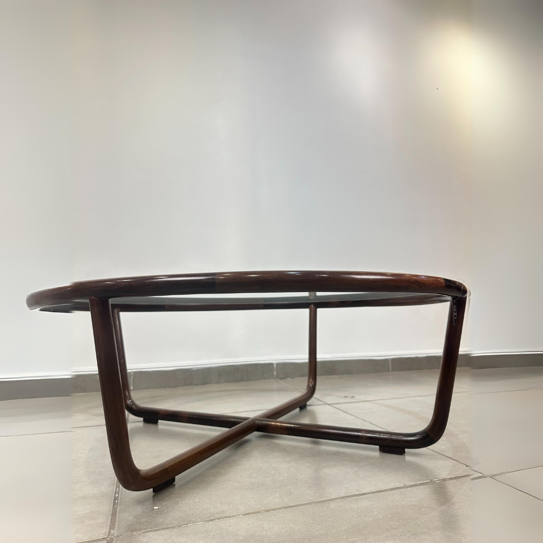 Descrição: A Mesa de Centro assinada por Joaquim Tenreiro é um exemplo clássico da habilidade do designer em criar peças de mobiliário que combinam simplicidade e sofisticação. Feita de jacarandá com tampo de vidro natural, esta mesa de centro é uma peça elegante que traz um toque de classe e funcionalidade para qualquer ambiente.