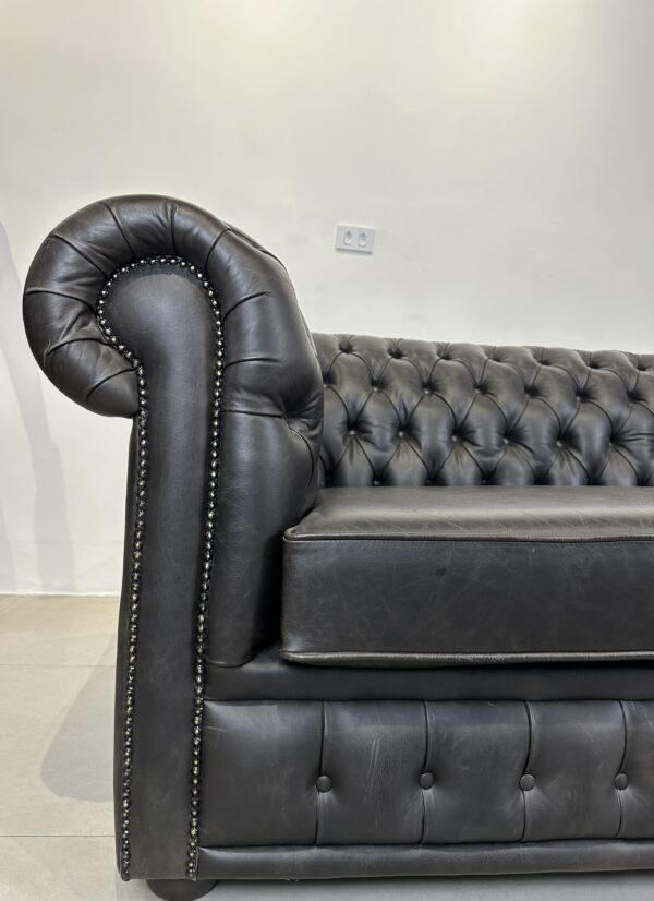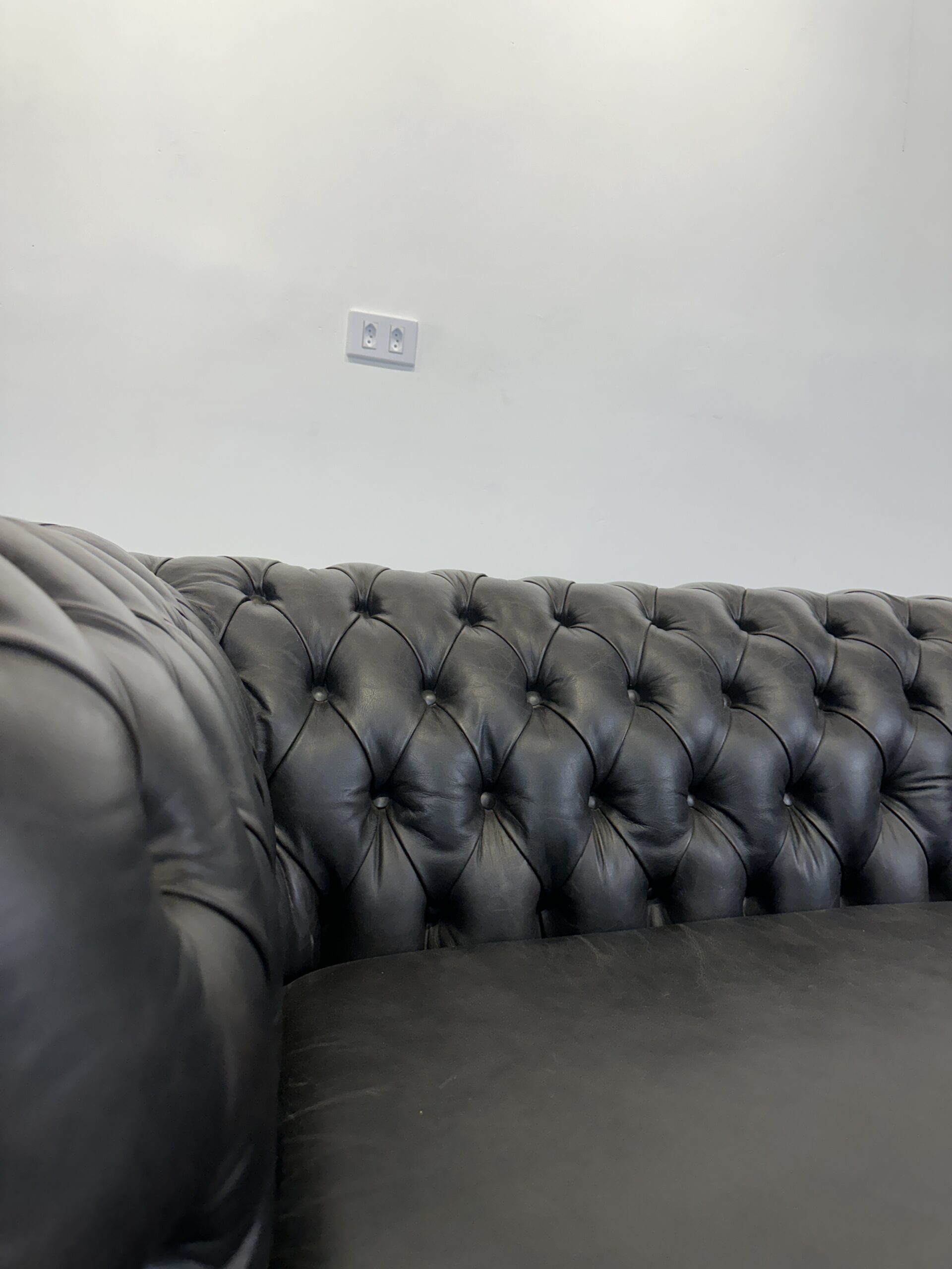 O sofá está em excelente estado, com o couro impecável e todos os detalhes cuidadosamente preservados, garantindo sua durabilidade e charme ao longo dos anos.