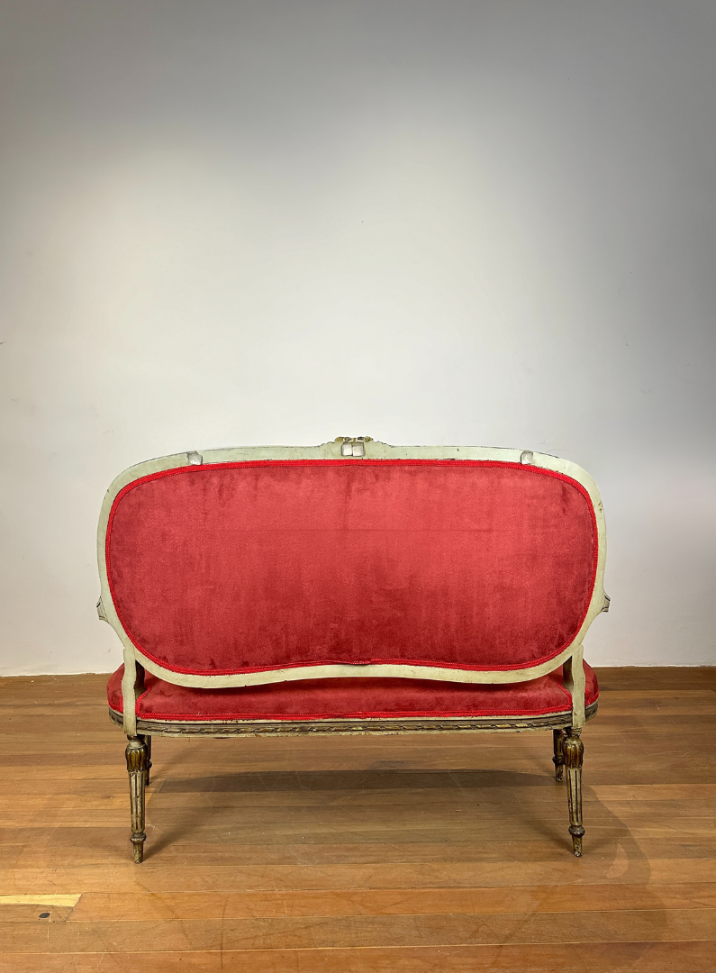 Estilo: O design é típico do estilo Luís XV, com linhas graciosas e detalhes ornamentais que refletem a grandiosidade do século XVIII. O veludo acrescenta um toque de luxo, tornando o sofá uma peça central em qualquer ambiente.
